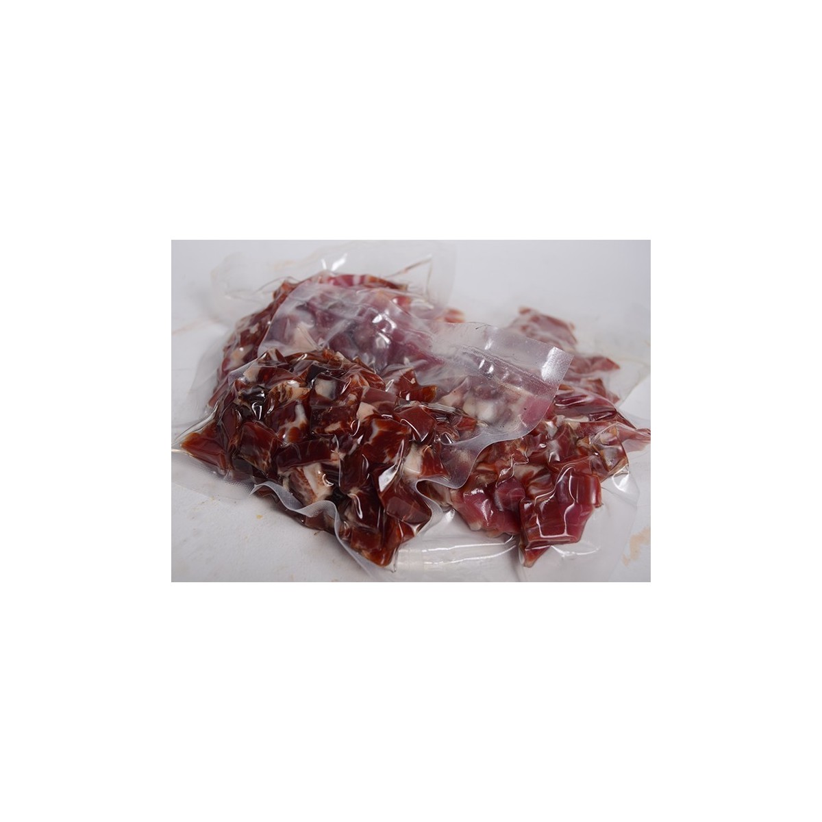Tacos de jamón serrano curado de forma tradicional. Ideales para tapas, guisos o para disfrutar solos con su sabor intenso y auténtico.