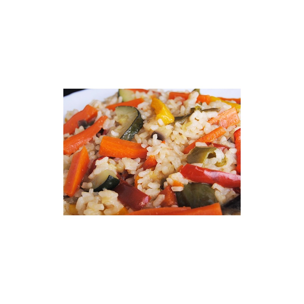 Arroz cocinado con verduras frescas. Precio por kilo.