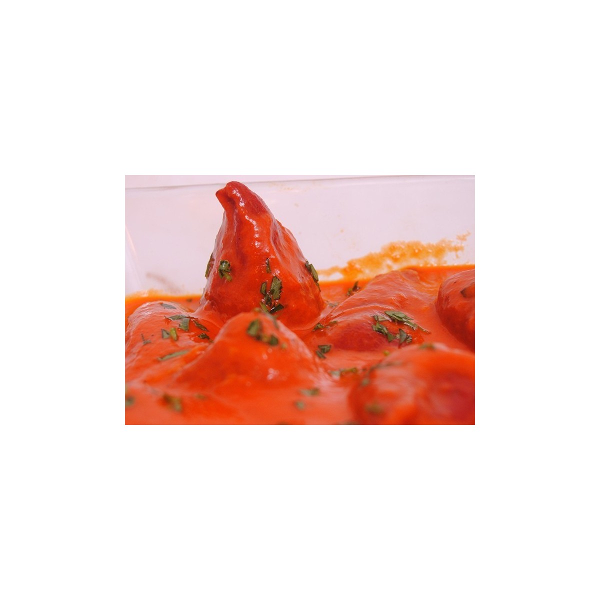Zezen itsatsaz barrubetetako piper bete gozo-gozoak. 350 gr-ko anoa.